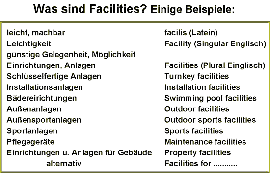 - Das Unternehmen ist insofern z.B. eine Stadtverwaltung. Die Facilities sind Anlagen (Straßen,